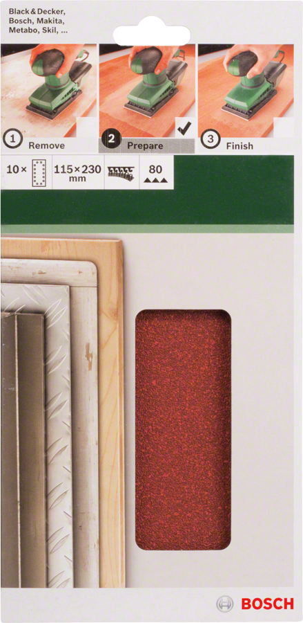 Bosch - 10-Pack of Oscillating Sanding Paper, 115 x 230 mm 80 Grit 14 Holes