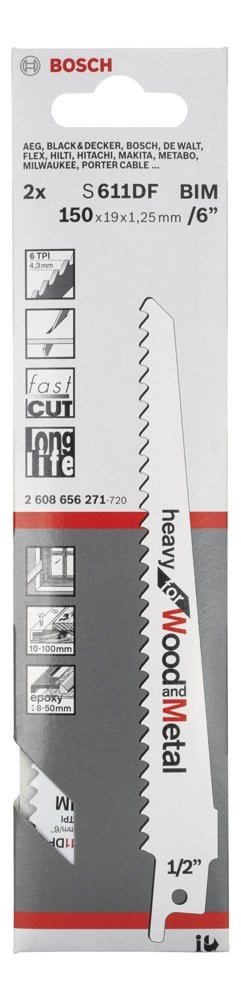 - S 611 DF Heavy for Wood and Metal Panter Testere Bıçağı, ahşapta ve metalde hızlı daldırmalı kesimler yapar