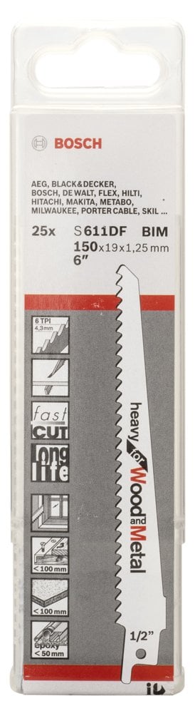 Bosch - Heavy Series Sabre Saw Blade for Wood and Metal S 611 DF - 25'li