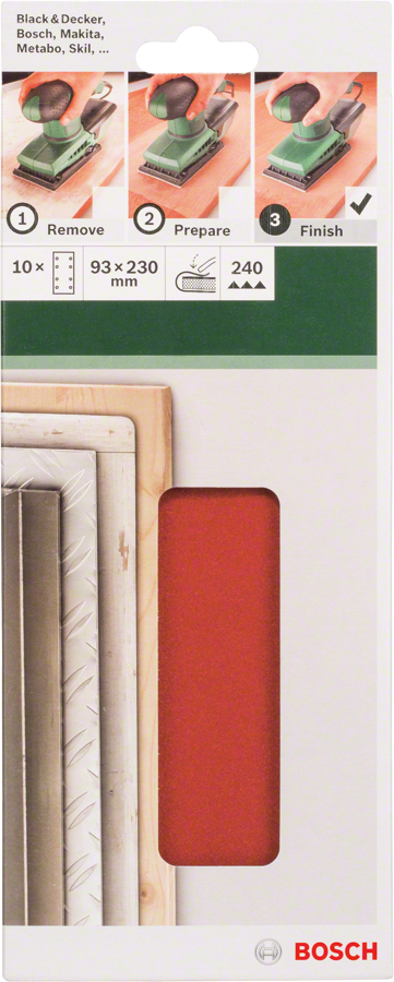 Bosch - Oscillating Sanding Paper 10-Piece, 93 x 230 mm 240 Grit 8 Holes