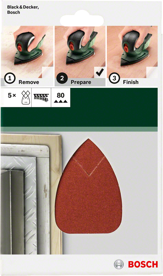 Bosch - Multi Zımpara Kağıdı 5'li, 95 x 135 mm 80 Kum 4 Delik